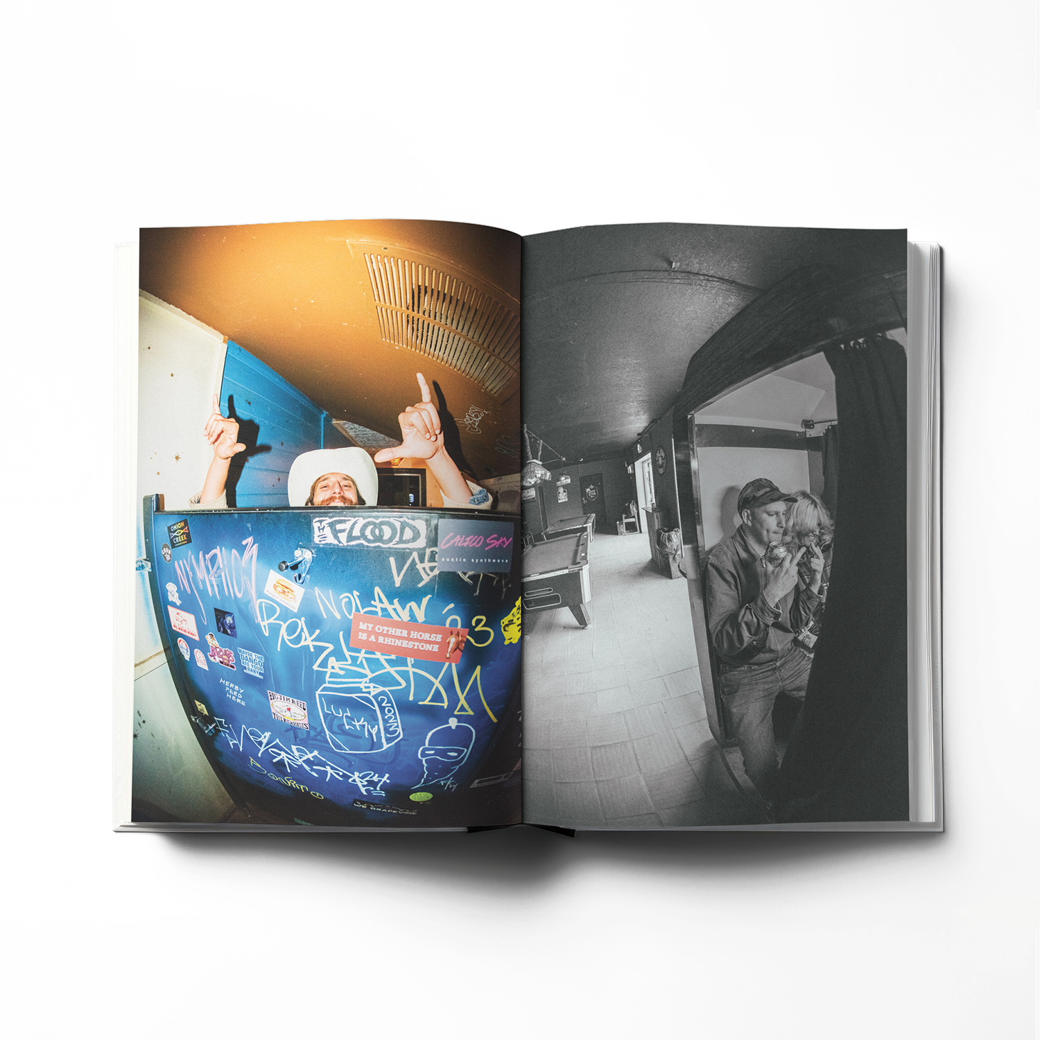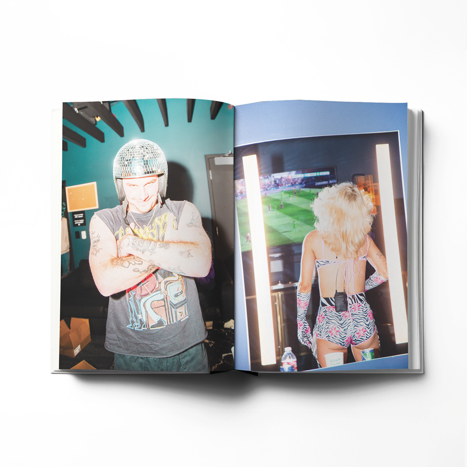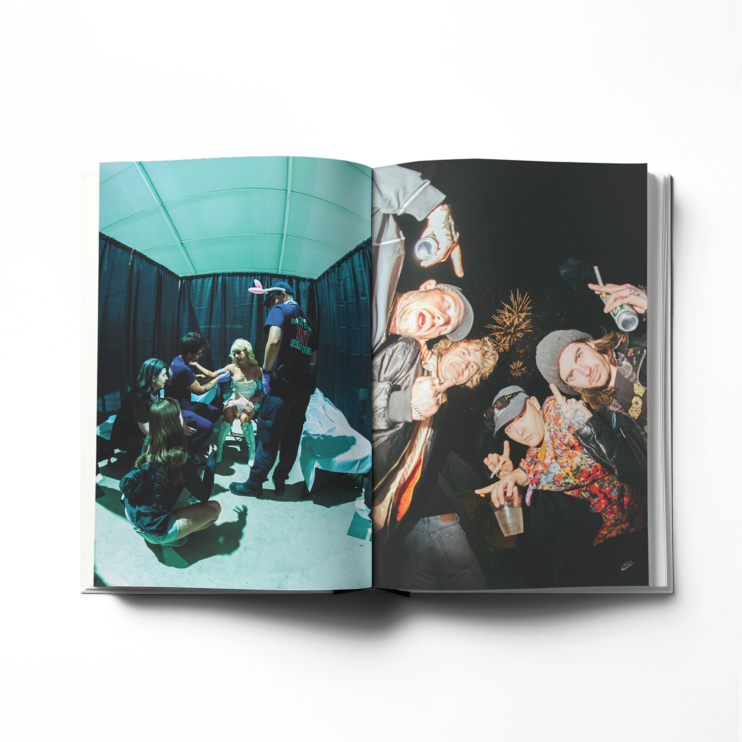 The book aims to give the reader an armchair version of being on the road: take the drugs, do the shots, get on the bus—all from the comfort of your wildly uncomfortable office chair. Watch thousands of people smash into one another with six-beer vigour. A safe, cathartic space to put your body on the line and let the energy of the people flow through you.